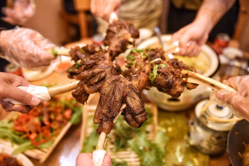 【農心日記】來自杭州品牌的農家融合菜。各種硬菜集結于餐桌上-風味羊拐,香酥德蹄,金榜魚頭,蒜愛上蝦,麥餅酥肉,豉油鵝,斷頭殘雪,養胃面疙瘩,農心炒粉絲,一品菌菇湯,特色煎餃。