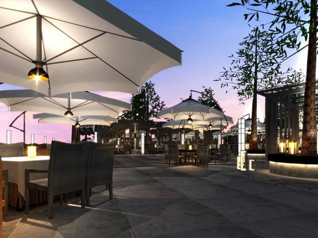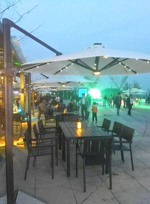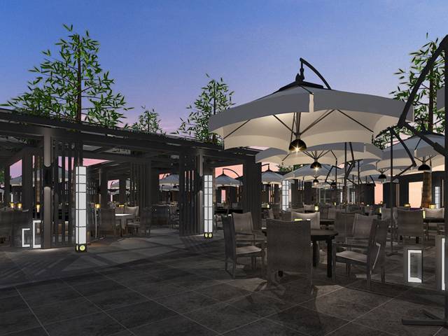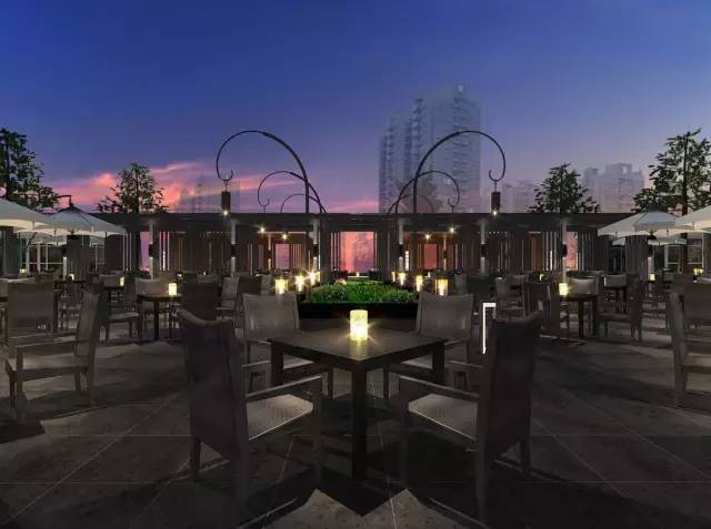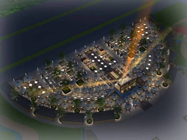 在配置上采用“功能+景觀”的理念,極具設計感的廣場亭廊,既能豐富廣場景觀提升整體形象,又能體現經營的區域劃分和遮雨功能。結合成都寬窄巷子和三亞海邊美食廣場的風情特點,使用新型的戶外藤編座椅,既休閑又時尚,讓廣場夜市更顯浪漫和輕松,同時在經營上有更多智能化科技化的配置。