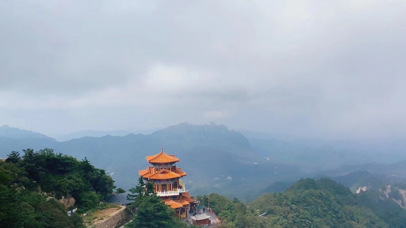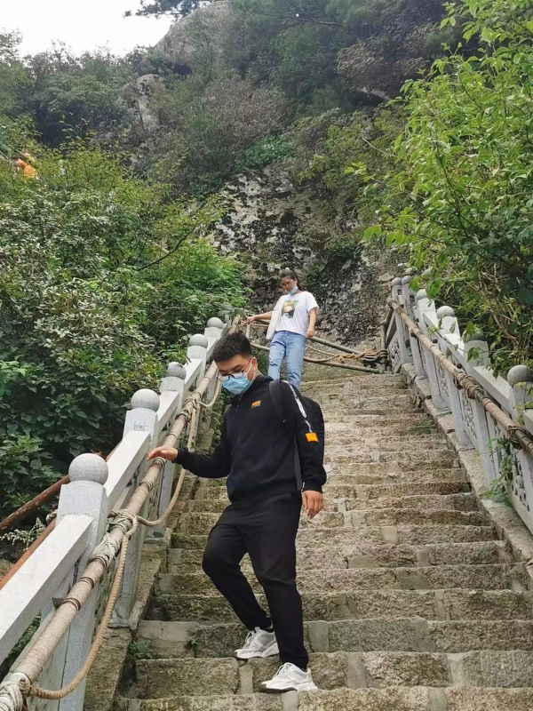 我們來到了海拔高度為2216米,因峰插天宮、頂如皇冠而得名的中原最高峰玉皇頂,在這里我們不斷挑戰自己的極限,通過大家之間的互幫互助,加油鼓勵,最終全部登上了最高頂。那綿綿青山,青峰千疊,莽莽蒼蒼,像一幅潑墨山水畫!這也使得我們更加體會到最美的風景需要我們不斷地堅持,不斷地攀爬。